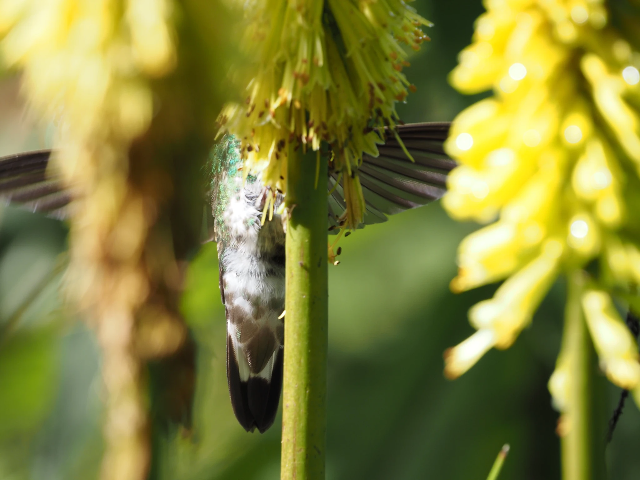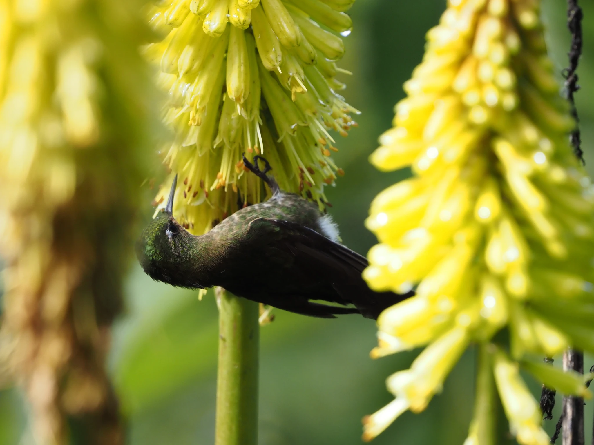 Teeme ka ise kohvipausi, istume tassidega majaseina ääres pingil ja vaatame pidevalt muutuvat pilve- ja valguspilti. Kui päike peale paistab, on soe. Kui parasjagu ei paista, on paras. Põõsastes siristavad mõned koolibrid ja käivad pärisõitelt nektarit limpsimas. Andy rullib restoranis telefonis.
